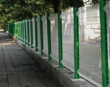 網(wǎng)片:處理方式可以浸塑和鍍鋅,也可以先鍍鋅后浸塑,網(wǎng)孔:50mm*100mm,50mm*200mm,55mm*100mm,55mm*200mm,60mm*100mm,60mm*200mm; 絲徑:Φ4.0mm,Φ4.5mm,Φ5.0mm,Φ5.5mm,Φ6.0mm; 外形尺寸:高800mm-4000mm*寬2000mm-3000mm,彎度:*般有2個彎度,3個彎度!
