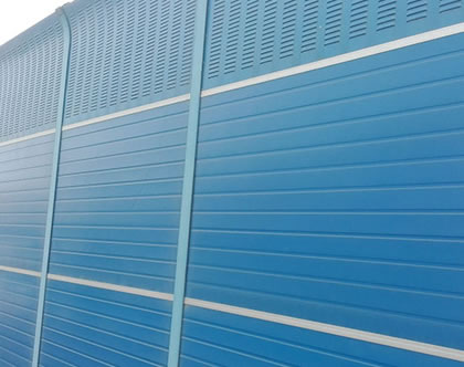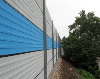 彩鋼聲屏障又名隔音墻,彩涂板聲屏障,主要以吸聲材料為芯材,采用彩鋼夾心板聲學(xué)構(gòu)件組成的吸隔聲屏障。