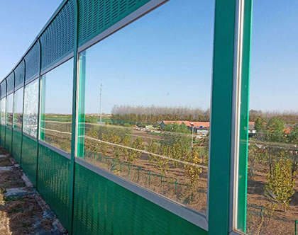 6、隔音性能:透明板聲屏障隔音效果明顯,比同等厚度的玻璃和亞加力板有更佳的音響絕緣性,在*際上是透明板聲屏障的首選材料。