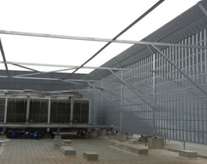 折角型聲屏障主要用于公路、高速公路、冷卻塔噪音治理。分為純隔聲的反射型聲屏障,和吸聲與隔聲相結(jié)合的復(fù)合型聲屏障,后者是更為有效的隔聲方法。指的是為減輕行車噪聲對(duì)附近居民的影響而設(shè)置在鐵路和公路側(cè)旁的墻式構(gòu)造物。
