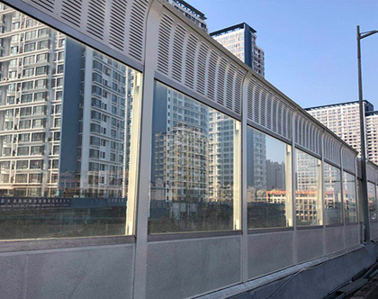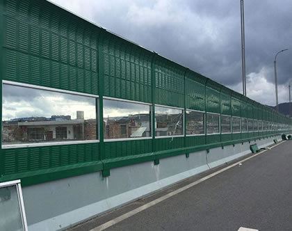橋梁聲屏障的主要組成部件: 基礎(chǔ)、立柱、屏體、固定件、密封件,有的還包括頂部結(jié)構(gòu)。