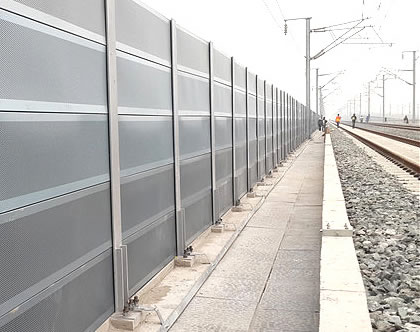 鐵路聲屏障也成為鐵路隔音墻,高鐵聲屏障,它是根據(jù)當(dāng)前高速鐵路列車運(yùn)行速度200km/h以下產(chǎn)生噪音設(shè)計(jì)的*種聲屏障。此類產(chǎn)品的設(shè)計(jì)已較為充分地考慮了高架高速道路、城市輕軌、地鐵的風(fēng)載、交通車輛的撞擊安全和全天候的露天防腐問題。