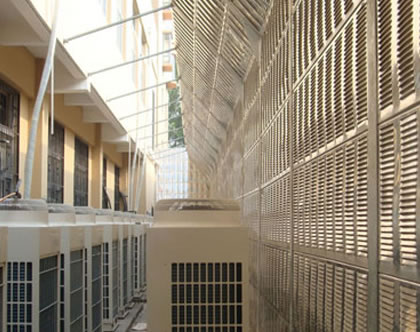 空調(diào)機(jī)組*般安裝在高層樓上或者露天平臺上,空調(diào)電機(jī)高速運(yùn)行的時(shí)候無法避免的產(chǎn)生巨大的噪音;空調(diào)機(jī)組聲屏障是目前公認(rèn)的有效處理空調(diào)外機(jī)噪聲的裝置。它是用于阻斷空調(diào)外機(jī)噪聲傳播的*種有效裝置,屬于對于空調(diào)機(jī)組外噪聲控制手段。